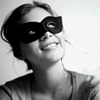 Description: hailee steinfeld, black and white, wearing a superhero mask